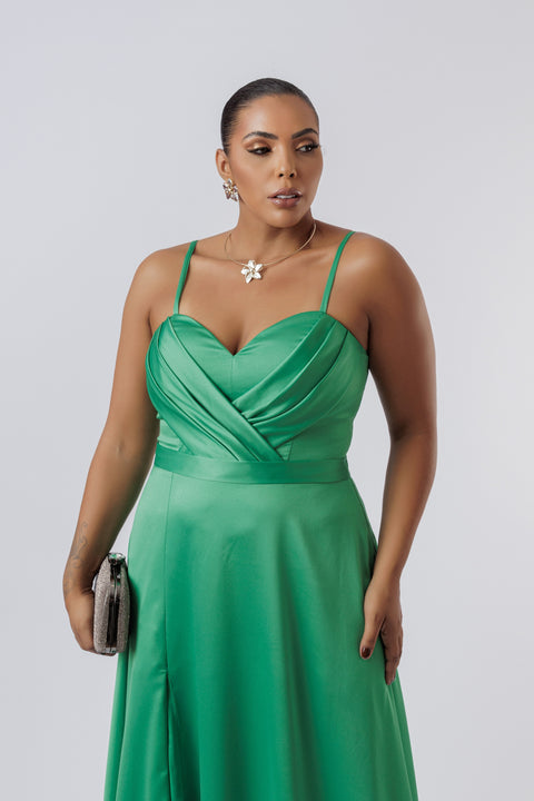 VESTIDO LONGO CETIM COM ALÇA VERDE