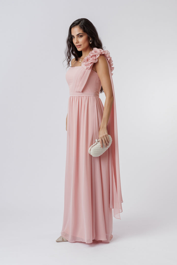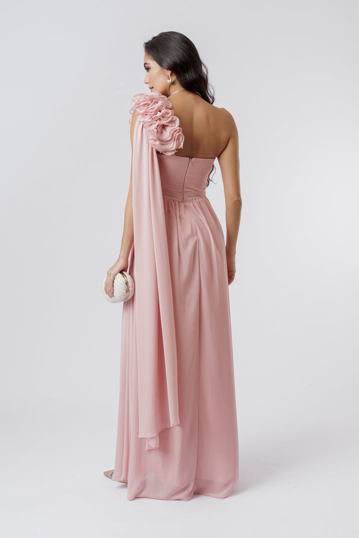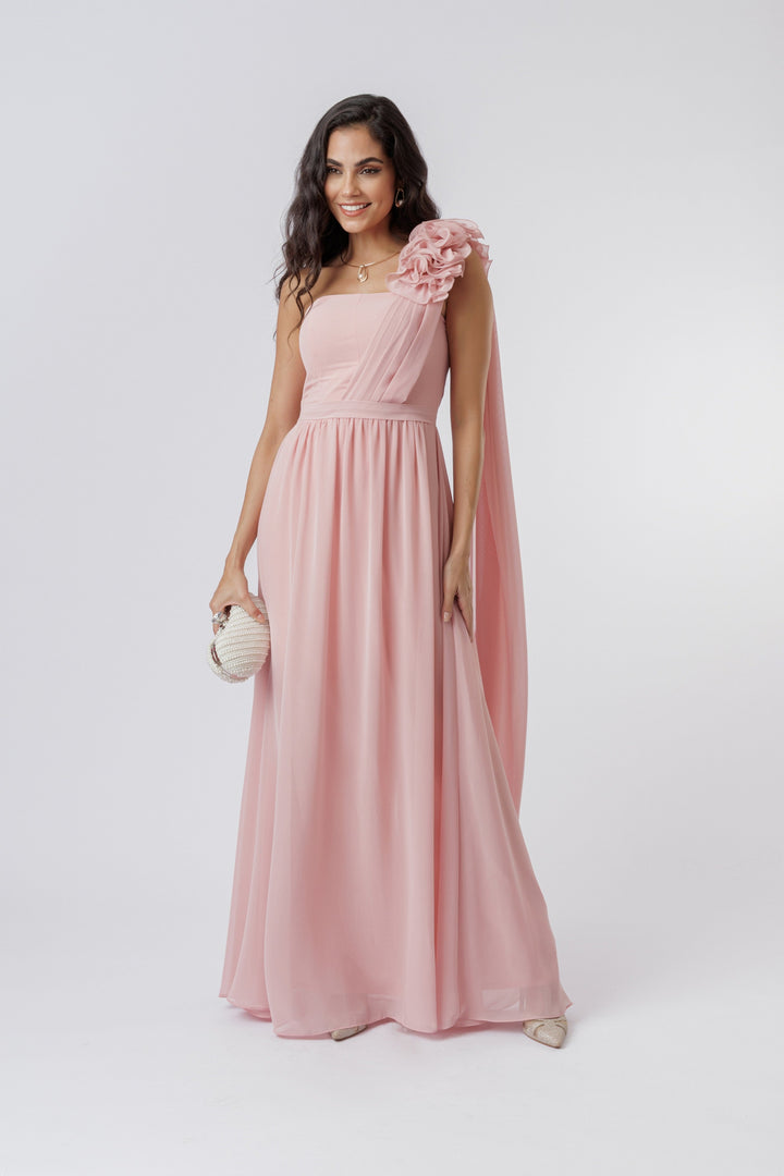 VESTIDO LONGO COM FLUFLU ROSE