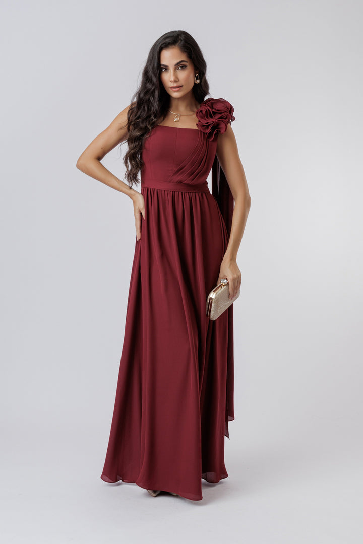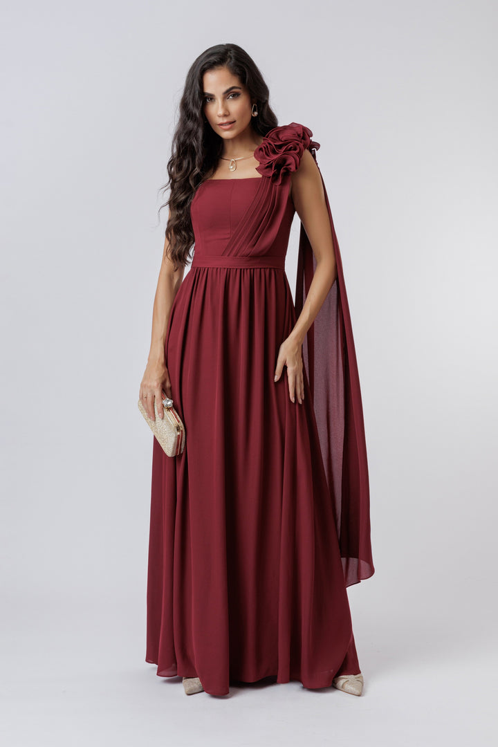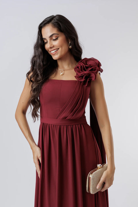 Encante-se com a delicadeza deste vestido de festa tomara que caia, que exala romantismo e sofisticação. O modelo apresenta um elegante detalhe de alça com pregas finas, trazendo aplicações florais sutis para um toque charmoso. A faixa na cintura realça a silhueta, enquanto a saia fluída em modelagem godê proporciona leveza e movimento impecável.